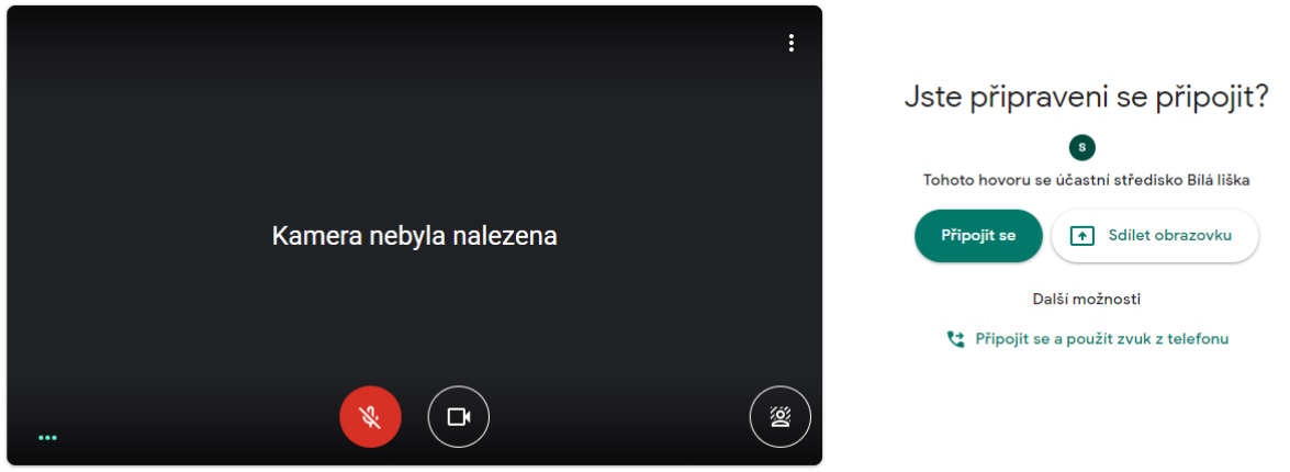 Zobrazí se vám následující obrazovka, už nyní si můžete vybrat, zda chcete využívat i mikrofon, i kameru. To lze později změnit.